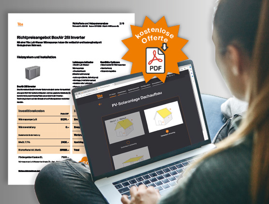 Mit dem innovativen Tiba Heizsystem-Konfigurator erhalten Sie sofort eine detaillierte Heizsystemanalyse und Richtpreisofferte – schnell und einfach als PDF zum Download.